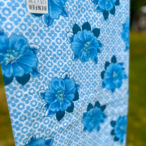 Et særdeles vakkert quiltet lappeteppe selges. Dette er patchwork på sitt beste; med mye hånd-applikering. De vakre bomullsstoffene, som er av beste kvalitet, har jeg forhåndsvasket. Teppet har jeg vattert; vatten består av 80% bomull og 20% polyester. Jeg har lang erfaring med lappesøm og har gjort all søm og quilting selv. Teppet er først og fremst et meget dekorativt pynteteppe. P.g.a størrelsen, passer det også på en seng, pledd til sofaen, henge over en stolrygg osv.