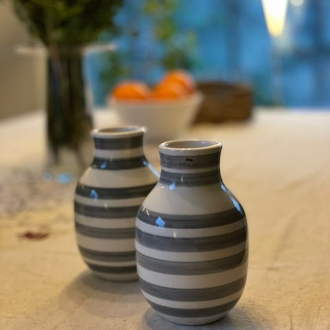 Selger pen, liten kabler omaggio vase i svart og hvit. Veldig dekorativ.
