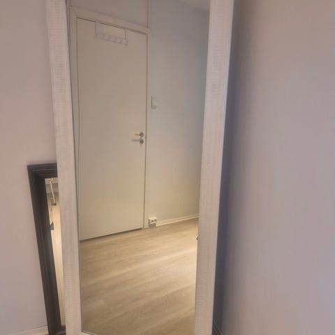 Speilet er skadet nede i venstre hjørne, se bilde.