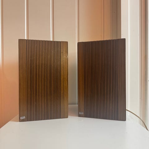 Selger her etpar design retro vintage ITT Schaub-Lorenz høyttalere i palisander. Disse er flotte i retro hjemmet . Flott design og tilstand.. perfekt til mancave eller hjemmebar..