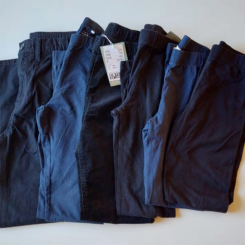 den litt lysere blå har et veldig lite hull på kneet. Selges derfor billigere (50kr).