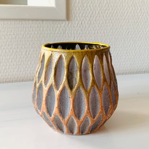 Diameter 5.5 cm. Høyde 8.5 cm.