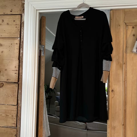 Marta kjole i deilig viskose/ull mix med raw cut. Ble dessverre litt for liten til meg.