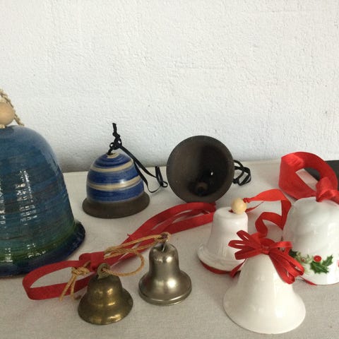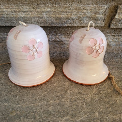 2 søte keramikk klokker til å henge opp, feks i vindu eller på dekorasjon.