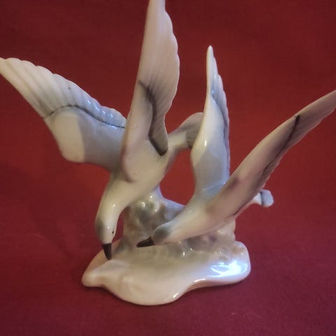 En eldre retro fisketerrin, med mønster av både fisk og fisker, og spesiell fiskehale som håndtak. Mål ca 15,5 x 9 cm inkl. lokket. Kjøpt i Danmark for noen år siden, så antar den er dansk, men den har ingen signatur. Et lite avslag på kanten under lokket, se bilder for stand.