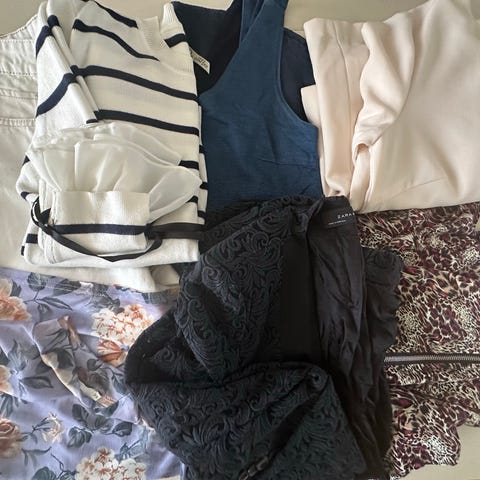 Alle plaggene er pent brukt og selges samlet slik dem er.