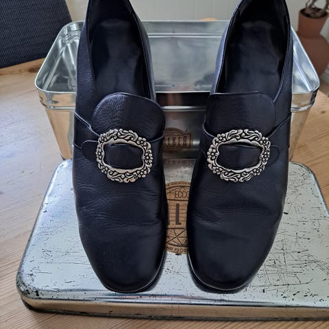 Disse har bare blitt brukt på 17 mai, og har holdt seg godt i fasongen. Sålen er hel og fin, fargen under sålen har blitt litt borte etter bruk. Men mye såle igjen. Trenger du nye bunadsko til 17 mai eller til konfirmasjon og det er disse du har sett på så er det ypperlig å kjøpe de nå. Ny pris er 2099kr. Selger de for 1000kr, men kan sikkert gå litt ned i