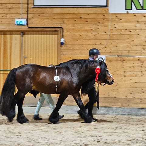 Han er kåret i Danmark og i Norge . Han er 2 premiert og 2 i kvalitet . Fantastisk flott hingst med farge blue dun, kalt gråblakk her til lands.