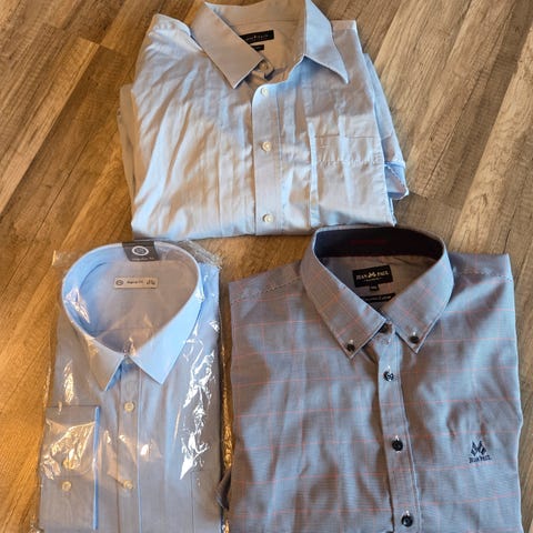 Ubrukte skjorter, 100 % bomull, kr 95 stk, Kan sendes Fiks ferdig.