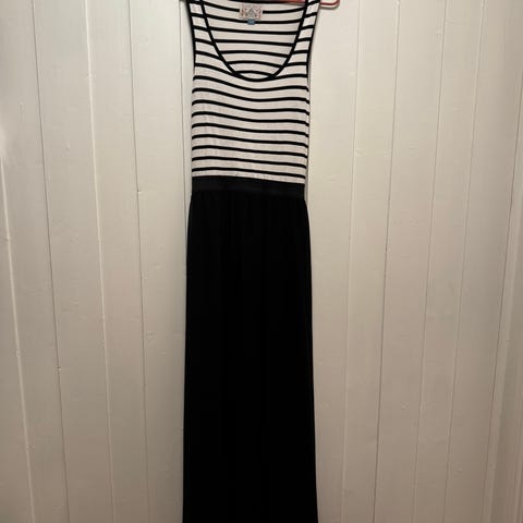 Fin enkel sort kjole med høy hals og a-fasong. Str. S, fra Bik Bok.