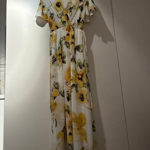 Sommerkjole, brukt2-3g. Strikk i midjen og kappe nede, kjolen er merket S, men tilsvarer M.kjøpt på Floyd