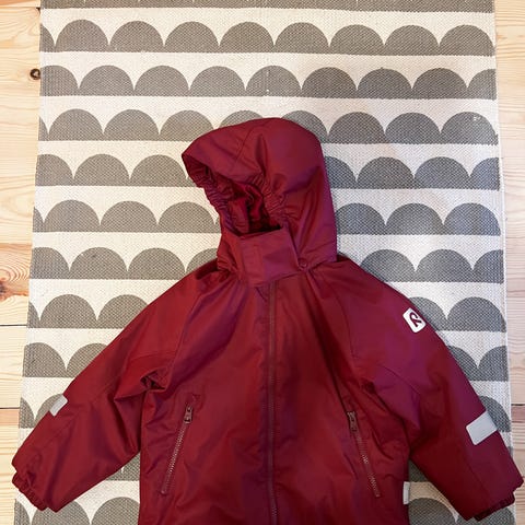 Svært pent og lite brukt jakke i nydelig rødfarge. Vind- og vanntett, avtagbar hette. Fra FIX (Lindex). Str. 104