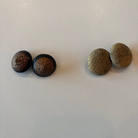 ☀️ De fleste er brukt kun én til to ganger hver, men de med hvite perler på (2 par) er kun prøvd på.