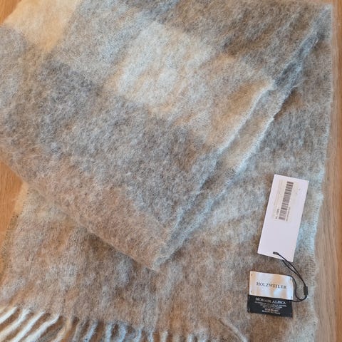 Mykt og deilig skjerf i 100% acryl. Hel lengde 165 cm. Nypris kr. 295, selges for kr 70