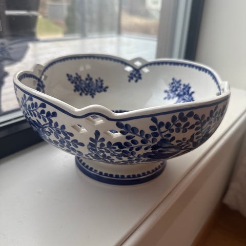 Utrolig flott vintGe skål i tynn porselen. Vakker blomster skål med gull dekor. Skålen står på 3 ben. Flott stand - ingen skader.