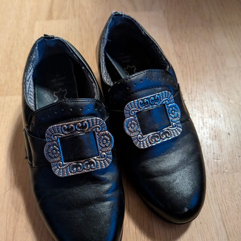 Godt brukte bunadsko med hæl, Folklore. Litt slitt frempå ene tuppen, selges derfor billig.