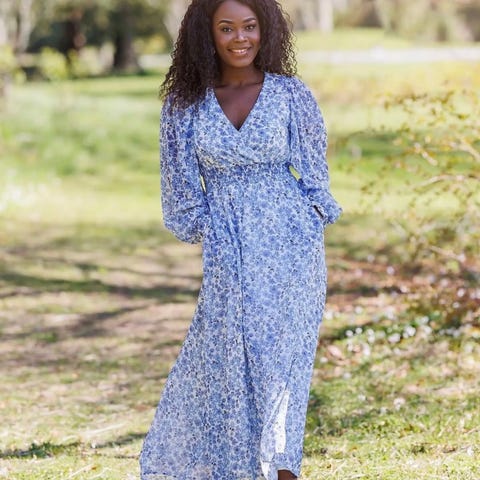 Pen kjole i lilla med hvite blomster