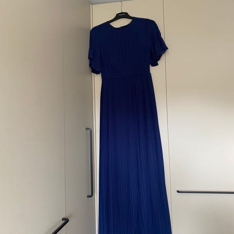 Strikk i ryggen så passer alle, merket som str medium. Personen på bilde er 165 og har ikke på sko, kjolen går da nesten til gulvet.
