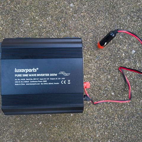 Selger 200 W DC til AC inverter. Gjør om 12V/24V likestrøm til 230V vekselstrøm. Lite brukt og fungerer som den skal. sendes på eget ansvar .jeg dokumenter med bilder ingen garangti. den fungerer fint.pluggen er borte på den bil plugg car plugg away