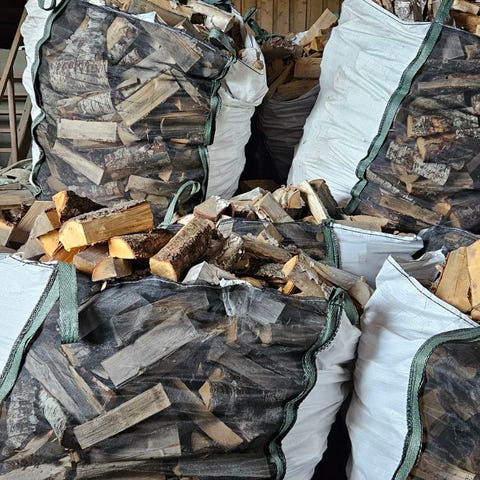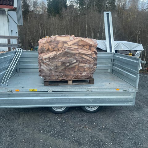 Kan leveres ut med tillegg i frakt avhenger hvor veden skal