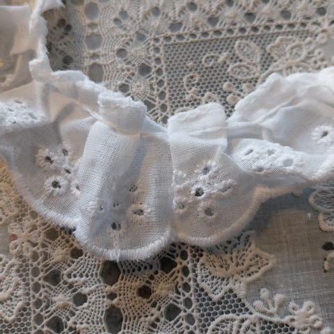 âą Et stk. bred blonde som muligens er gardinkappe.