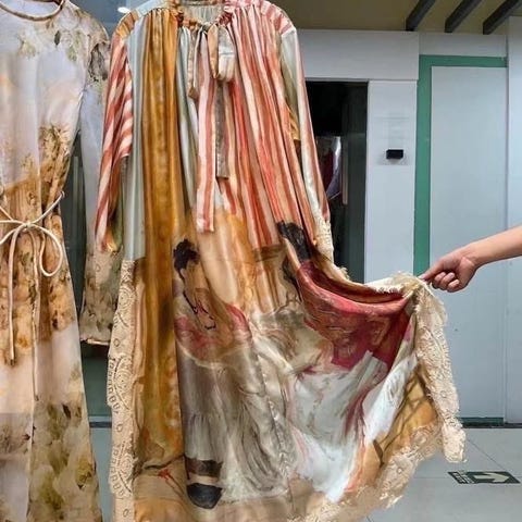 A fusion of the label's romantic aesthetic, striking silhouettes and vivid prints. Part of the lineup, this Poster motif, a clash of faded letters and photographic beach scenes. Elevated detailing, Seashell trims at the neck and cuffs and diagonal gathered seam dress sports an all-over.(Model is 173cm)