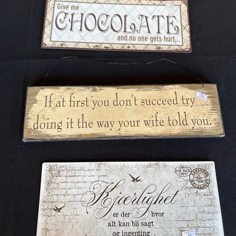 En stor magnet tavle og en liten selges.Morsomme komentarer om gin på dem.Den sier:Drink mer gin.