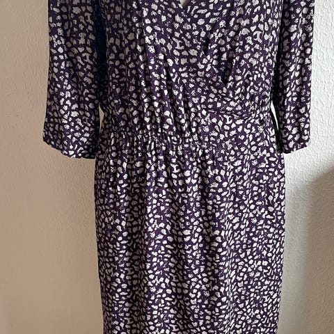 Stil: Midilengde kjole med V-hals og knappedetaljer.