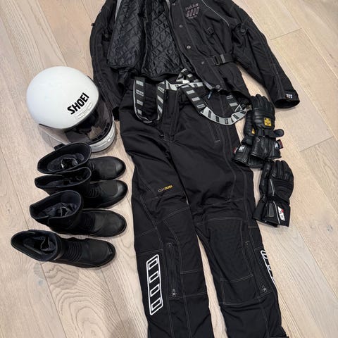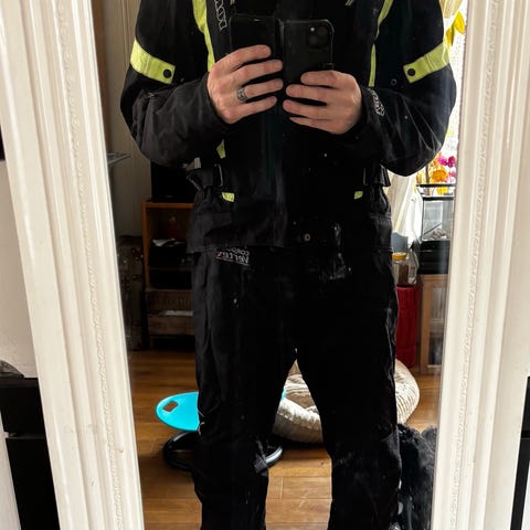 Halvarssons dress str 44, Goretex, regn og vindtett. Utagbart for i bukse. Kun brukt under kjøreopplæring så Max 10 timer bruk, ingen synlig slitasje eller falmet.