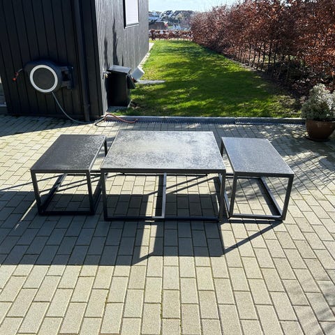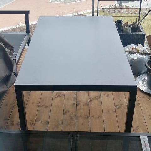 GardenArt ute bord i sort aluminium. Tilstand er så god som nytt. Bordet var kjøpt hos Finedesign og kostet 6990 som nytt.