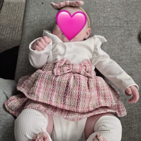 Lyserosa jumpsuits for jente fra Ralph Lauren. Litt usikker på størrelsen. Tror det er 2 år. Min datter er 2 år på bildet.