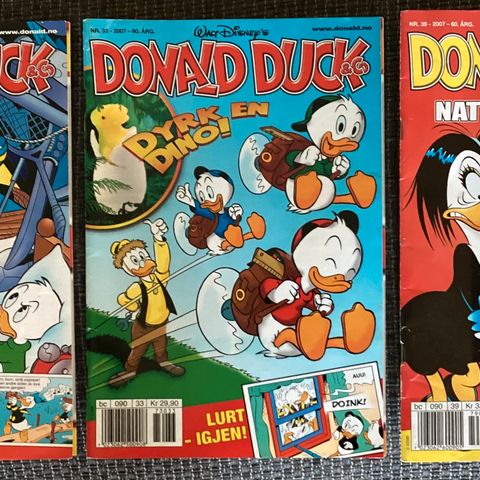 2010- 17 meget flott DONALD DUCK blad. NR. 1- 3- 4- 5- 6- 7- 23- 20 -23- 24- 25- 43- 46-47- 48- 51-52. Hele og meget fine! Donald Duck bladene selges kr. 15,- pr. stk for de 3 første, utover det kr. 5,- pr. stk. Ny pris kr. 82,90. Donald Duck bladene kan sendes, eller hentes her i Sandefjord. PS! Har flere Donald Duck blader i flere annonser her på Finn.no.