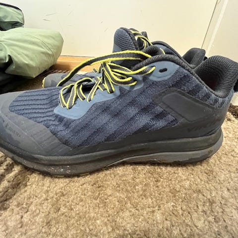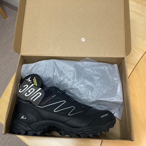 Skoen er primært brukt på gåturer langs grusvei. Noe slitasjeskader, men skoen har fortsatt mange mil igjen. Selges da guttungen har vokst i fra de. Bud i området halv pris besvares ikke.
