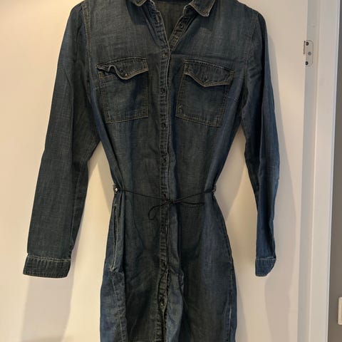 Kjolen er fôret og har strikk i livet. Løst belte følger med.