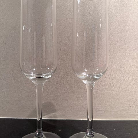 12 nydelige champagneglass fra Boda Nova. Aldri vært i bruk. Selges for 120 kr pr stk. Selges samlet . 23 cm høye .