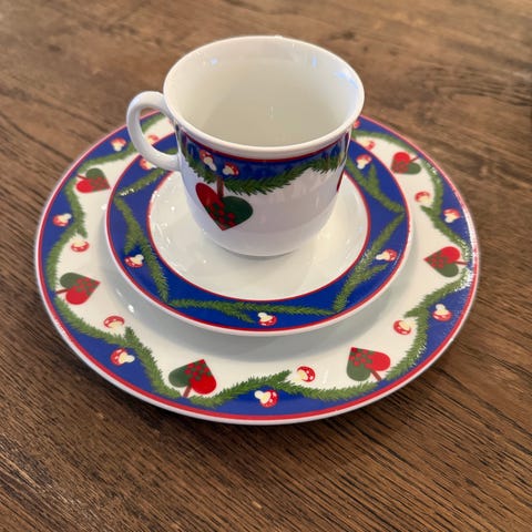 Retro porselen servise deler til Jul fra Graf von Henneberg Jlmenau, GDR