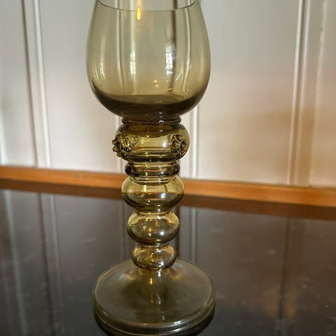 Glassbolle og vase cognacfarget glass retro oransje