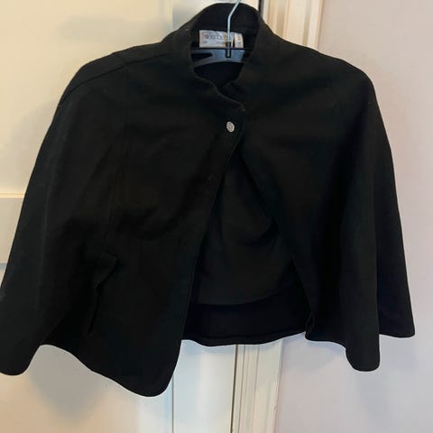 Størrelse 140, ca 12 år. Total lengde på capen er 84 cm. Ser ut som ny!