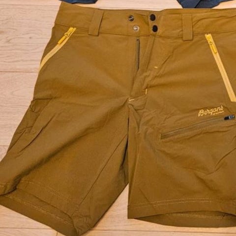 3 knelange shorts fra Bergans str.S selges samlet. Den ene har noen få oljeflekker (nederste). Ellers hele og pene og brukt av en gutt i fjor sommer. Litt krøllete etter å ha vært pakket bort i vinter.