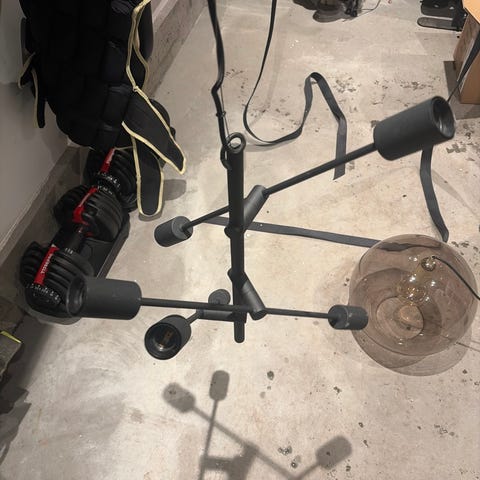 SOLGT! - Taklampe med justerbart opphengssystem og 5 lyskilder , ca. 100 cm. lang , 400,-