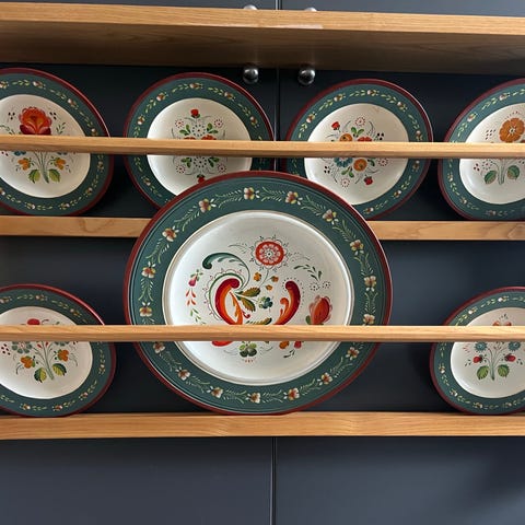 - Rosemalt bolle i tre , diameter ca. 31 cm høyde ca. 7 cm , 500,-