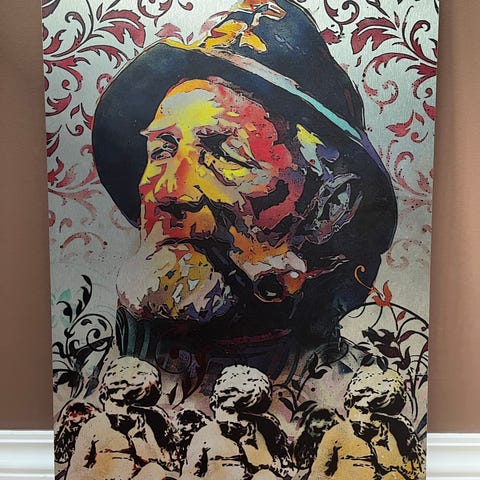 Med svart, gull og sølv farger som flyter over lerretet på en fin måte.