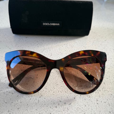 Solbrillene fra Maui Jim. Lite brukt. Cateye. Etui følger med. Innfatning i rød og tortoise.
