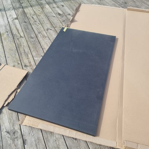 Nylakkert benkeplate i elegant grånyanse. Kan brukes som bordplate eller kontorpult. Kan også bygges om til hyller.