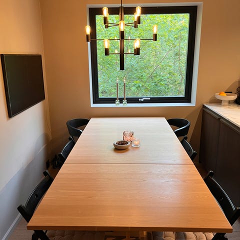 LEKKER kombinasjon. Enkel - praktisk uttrekks funksjon. Bordet er plassvennlig og elegant, men stort nok til å romme mange når det er trukket helt ut.