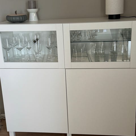 Skapet på bilde 2 har en møbelknott på døren så det ikke skal skades. Hvis du lurer på hva den er :)