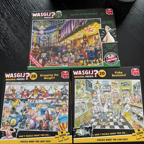 Komplett. 1000 brikker. Et par har løsnet litt i øverste lag, se bilder