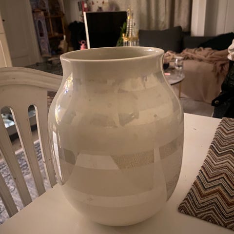 Kähler blomstervase i hvit/sølv. Det er den store vasen, og er 30,5cm høy.