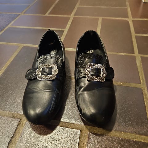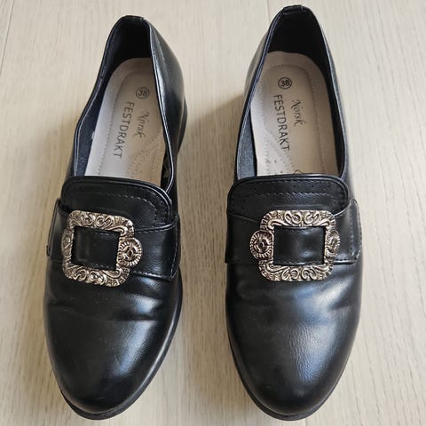 Pent og lite brukte bunadssko selges for 139 kr. Kjøpt på Spar Kjøp.