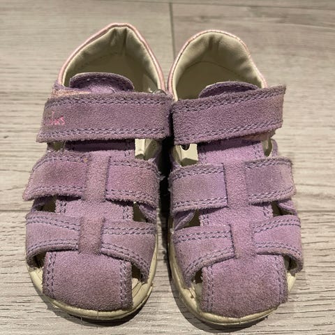 Sandaler i skinn med tett tupp i str 24 selges. God såle, noen falmet i rosafargen. Fortsatt masse bruk igjen. Nyvasket. Kan sendes